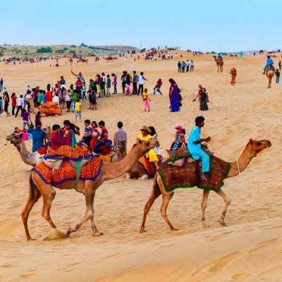 Experience the thrill of the Thar Desert with our Jaisalmer desert safari packages. Ride a powerful jeep through rolling sand dunes or opt for a peaceful camel trek — both are perfect ways to witness the beauty of Rajasthan’s golden landscapes.